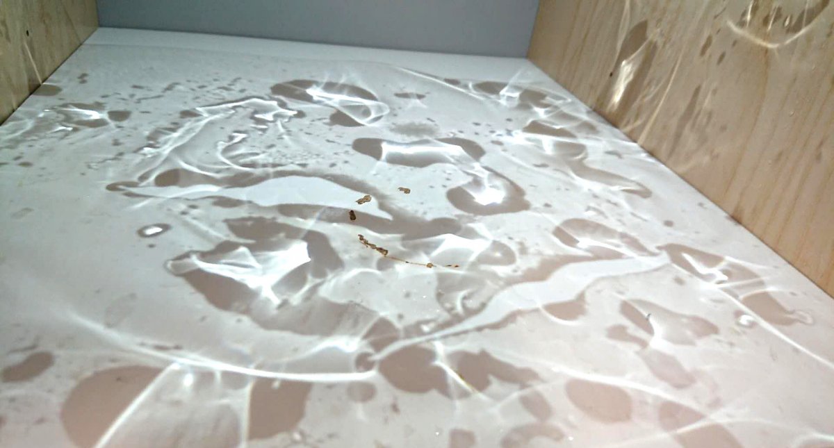 Today, I gathered several plastic materials to experiment with water to create the shadow, such as plastic film, mirror, fluorescence plate, vacuum plastic, acetate etc. By experimenting them with light and water, I found out those are transparent creates clearer shadow than translucent plastic. By using a heat gun to change the shape and add a texture to a piece of acetate, it creates beautiful ripple shape on it. When I pour water on the plane and using a torch to irradiate it, the shadow created has a beautiful and dramatic effect. As the acetate is thin, it is easy to use the heat gun to make it crinkle. I also found a piece of illusion wave clear paper in 4D modelshop, the pattern and texture are interesting, however, because it is translucent the shadow created is not very effective. Overall, I quite like the effect created by the acetate piece, I will further research materials to find the most suitable one.